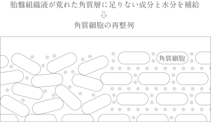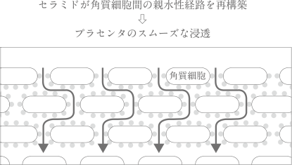 親水性のある浸透経路が再構築されることで、生プラセンタの活性成分を肌深く導きます。